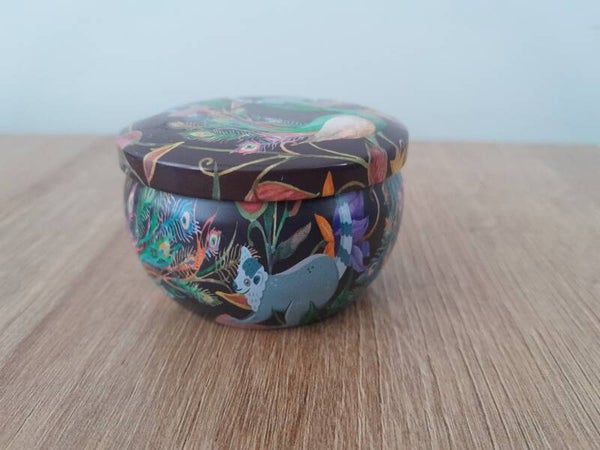 Leuk blik met kaars. Elk blik heeft een andere versiering aan de binnenzijde. Dit is dus bij elke kaars een verrassing.